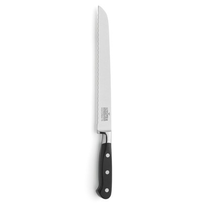 Wysokiej jakości noże do chleba z naszego asortymentu świetnie sprawdzają się zarówno w zastosowaniach profesjonalnych, jak również do użytku domowego i zapewniają precyzję oraz lekkość krojenia różnych gatunków pieczywa. Warto wybierać noże do pieczywa, które zawierają spory dodatek chromu – minimum 12%. Najlepszy wybór to nóż do chleba ze stali nierdzewnej chromowej, bo choć noże stalowe są tańsze i można je samodzielnie ostrzyć, to jednak nie są tak solidne i długowieczne. Z kolei ceramiczne dłużej pozostają ostre, ale w podczas upadku mogą się wyszczerbić. Dzięki wyprodukowaniu z solidnej stali nierdzewnej nóż do chleba jest zabezpieczony przed korozją i niestraszne są mu jakiekolwiek uszkodzenia. Modele, które mają w strukturze dodatek molibdenu i wanadu są jeszcze bardziej odporne, w tym także na wysoką temperaturę. Doskonały, profesjonalny nóż do chleba na zawieszce to odpowiedź dla wszystkich tych, którzy potrzebują narzędzia niezbędnego w krojeniu idealnych, równych kromek oraz przekrawania na pół chrupiących kajzerek.