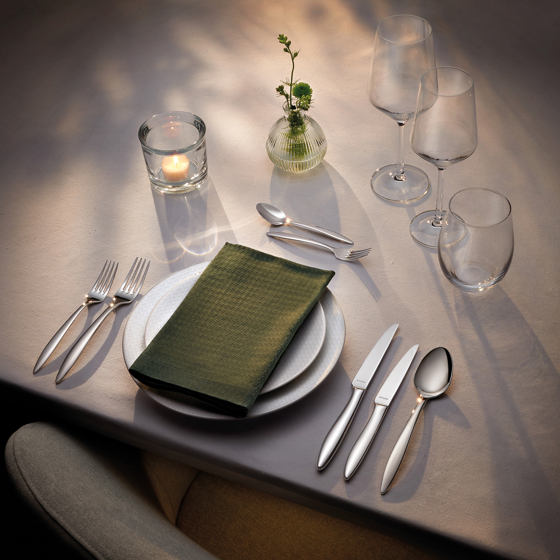 Ostro zakończona rękojeść nadaje modelowi charakteru. Spodoba się osobom odważnym i zdecydowanym. Pięknie prezentują się na stole, bardzo wygodne w użytkowaniu. Sztućce polerowane.