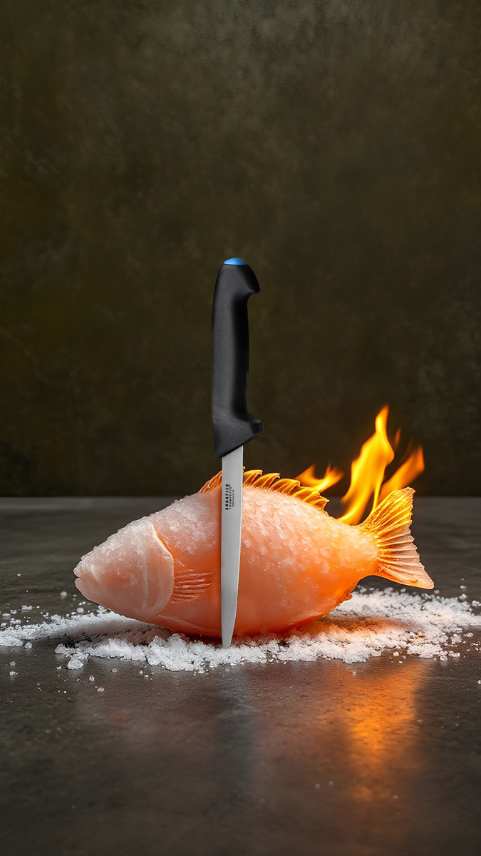 Sabatier Trompette to tradycyjna marka, która pochodzi z początku XVIII wieku z Thiers, ojczyźnie noży kuchennych we Francji. Wysokiej jakości noże kuchenne Sabatier spełniają specyficzne życzenia każdego zastosowania kulinarnego. Wszystkie elementy są starannie dobrane: kształt ostrza tnącego, ergonomia rękojeści, zoptymalizowana waga i idealna równowaga między ostrzem tnącym a rękojeścią. Profesjonaliści na całym świecie używają noży Sabatier od dziesięcioleci.