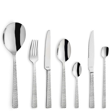 Stylowe sztućce Felicity to wyjątkowo atrakcyjne dopełnienie rodzinnego obiadu, weselnego przyjęcia czy też restauracyjnych aranżacji. Świetnie komponują się z zastawą i innymi dekoracjami, jakie na stole się pojawiają. Uwagę przykuwa oryginalna faktura oraz warianty kolorystyczne. Komplety marki Amefa Felicity są dostępne w niezwykle eleganckim odcieniu szampana oraz w nowoczesnej czerni. Dzięki temu w każdym wariancie podkreślać będą unikatowe kompozycje. Sztućce model Felicity, jakie oferujemy na sklep.amefa.pl, świetnie będzie pasować do tradycyjnych i minimalistycznych talerzy. To propozycja dość uniwersalna, która pozwala się delektować każdym spotkaniem przy stole. Poza tym doskonałej jakości komplety będą także dobrym pomysłem na prezent. Sztućce Felicity produkowane są z najwyższej jakości stali nierdzewnej niezawierającej niklu. Można je myć w zmywarce, są bardzo wytrzymałe, a producent objął tę kolekcję wieczystą gwarancją. Zestaw składa się z 24 standardowych elementów. Są bardzo wygodne, dobrze leżą w dłoni, a młotkowane zdobienie na każdej rączce sprawia, że są prawdziwą ozdobą. Faktura nieco przypomina skórę węża, co wprowadza rewelacyjny styl do domów czy restauracji. Po sztućce z kolekcji Amefa Felicity wielu klientów sięga codziennie. Dla innych wyjątkowy design jest stałym elementem świąt czy ważnych uroczystości. To klasyka gatunku, która zachwyca połyskiem, kolorami, szlachetnym wykończeniem oraz odważnym dekorem. Zobacz, jak sztućce model Felicity będą się prezentować na Twoim stole.